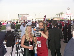 Das Hamburger Fernsehteam des neuen TV-Programms "Sheix-TV", das im April auf Sendung geht, kam somit zu einmaligen Aufnahmen. Die beiden Fernsehjournalistinnen Chris und Andrina bewaeltigten mit ihrem weiblichen Charme manche / trotz aller touristischen Weltoffenheit des Landes / noch immer bestehende Huerde fuer ihre freiheitliche journalistische Taetigkeit. Fachliche Unterstuetzung erhielten Sie von dem Filmproduzenten und Kommunikationsprofessor Folkert Klaassen, der seit Jahren gute Kontakte zur herrschenden Maktoum-Familie unterhaelt.