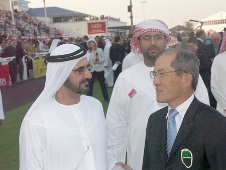 ![]() Seine Hoheit, der Koenig von Dubai Scheikh Mohammed Al Maktoum waehrend des Dubai World Cup 2006 im Gespraech mit Seiner Exzellenz, dem Botschafter von Japan |
