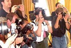 wie gebannt im Pulk der Reporter, als der Sänger mit dem Gänsehaut-Feeling weitere Konzerte in Deutschland ankündigte: In