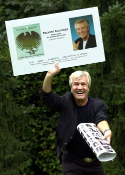 ![]() 'Weltrekordhalter' Folkert Klaassen präsentiert für das Guinnessbuch der Rekorde ein "Köcher-Exemplar" seiner VIP-Visitenkarte. Mit 92 mal 55 Zentimeter ist sie die zur Zeit größte der Welt. Auf der Rückseite der Karte zeigt der weitgereiste Dortmunder Publizist und Gala-Sänger Fotos von Begegnungen und Gesprächen mit Prominenten in aller Welt. Folkert (59) ist Multitalent und "Friedenssänger" der UNICEF. Foto: Kirsten Neumann DDP Der Dortmunder Folkert Klaassen hat mit seiner Visitenkarte einen neuen Rekord aufgestellt. Sie geht als größte Visitenkarte der Welt in das Guinessbuch der Rekorde 2001 ein. Die Karte ist 92 Zentimeter breit und 55 Zentimeter hoch. Das neue Buch der anerkannten Weltrekorde erscheint am 27. September. Der Publizist und Gala-Sänger Folkert Klaassen (59) ist bei seinen Auftritten und in Ausübung seines Journalistenberufes in vielen Ländern der Welt mit berühmten Leuten zusammengekommen. Der Weltrekordhalter, der im Ausland auch unter dem Künstlernamen Bruce Voice auf Galas auftritt, hat eine Vielzahl der Fotos seiner persönlichen Begegnungen mit Staatsmännern und Weltstars auf der Rückseite seiner überdimensionalen Visitenkarte zusammengestellt, die er "gegebenenfalls aus dem Köcher ziehen" kann - natürlich besitzt er aber auch eine Kleinausgabe im Taschenformat. Zu den Prominenten, mit denen der Vielgereiste auf seinen Weltreisen und als Multitalent und Friedenssänger (UNICEF) zu tun hatte, zählen die Könige und Prinzen von Dubai, die Königin von Jordanien, Staatsmänner wie Bill Clinton, Weltstars wie Sir Peter Ustinov, José Carreras, Sophia Loren, Siegfried und Roy, Sir Peter Ustinov, Bo Derek, Danny de Vito, David Hasselhoff, Gina Lolobrigida, Pelé oder z.B. der Herzchirurg Professor Christiaan Barnard. In Deutschland gehören dazu neben anderen Johannes Rau, Gerhard Schröder, Kurt Biedenkopf, Karl Lagerfeld, Justus Frantz, Franz Beckenbauer. Viele von ihnen sind auf der Rückseite der Rekord-Visitenkarte abgebildet. Klaassen, der Ende 99 in Berlin die vom Berliner Senat autorisierte UNICEF-Friedens-CD herausbrachte, erhielt kürzlich eine Einladung in den Vatikan nach Rom, wo seine musikalische Friedensbotschaft Gehör gefunden hat. Auch das Weiße Haus in Washington hat bestätigt, daß ein Auftritt des Friedenssängers dort "auf Termin liegt". Kontakt: Folkert Klaassen 0172-2324101 E-mail: Prof@VIP-Magazin.tv Weitere Informationen und Downloads von Fotos des Weltrekordhalters zusammen mit Prominenten aus aller Welt: http://www.asiman.com/holiday-film/prominente.htm |