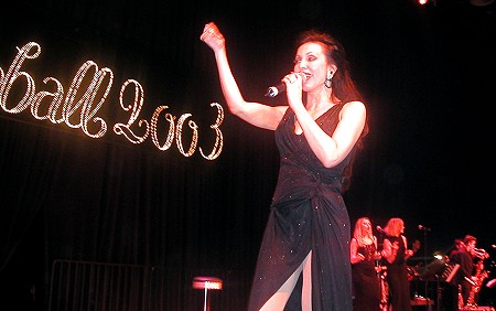 Mit aufreizend aufgeschlitztem Abendkleid präsentierte Jennifer Rush zum Bochumer Presseball in der wieder aufgebauten Ruhrlandhalle eine temperamentvolle Show. Ihre Fans unter dem elegant gekleideten Publikum ließen sich nach alter Gewohnheit auf dem ausgelegten Teppich vor der leider äußerst kahl ausgestatteten breiten Bühne nieder, um den Auftritt des Stars hautnah mitzuerleben. Enttäuschung bei manchem langjährigen Presseballgast: Im Gegensatz zu den meisten hier aufgetretenen Superstars verkroch sich die Sängerin nach dem Auftritt in ihrer Garderobe - zum privaten Champagnerumtrunk. |