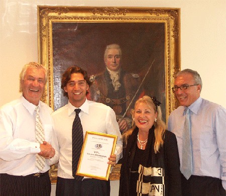 VIP h.c. Simon Rahmann die Ehrenurkunde der Internationalen VIP-Loge, Botschafter-Gattin Lilo Cappell, Dr. Amadeo Rahmann.