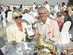 ![]() Seine Hoheit, der Koenig von Dubai Scheikh Mohammed Al Maktoum waehrend des Dubai World Cup 2006 im Gespraech mit Seiner Exzellenz, dem Botschafter von Japan |