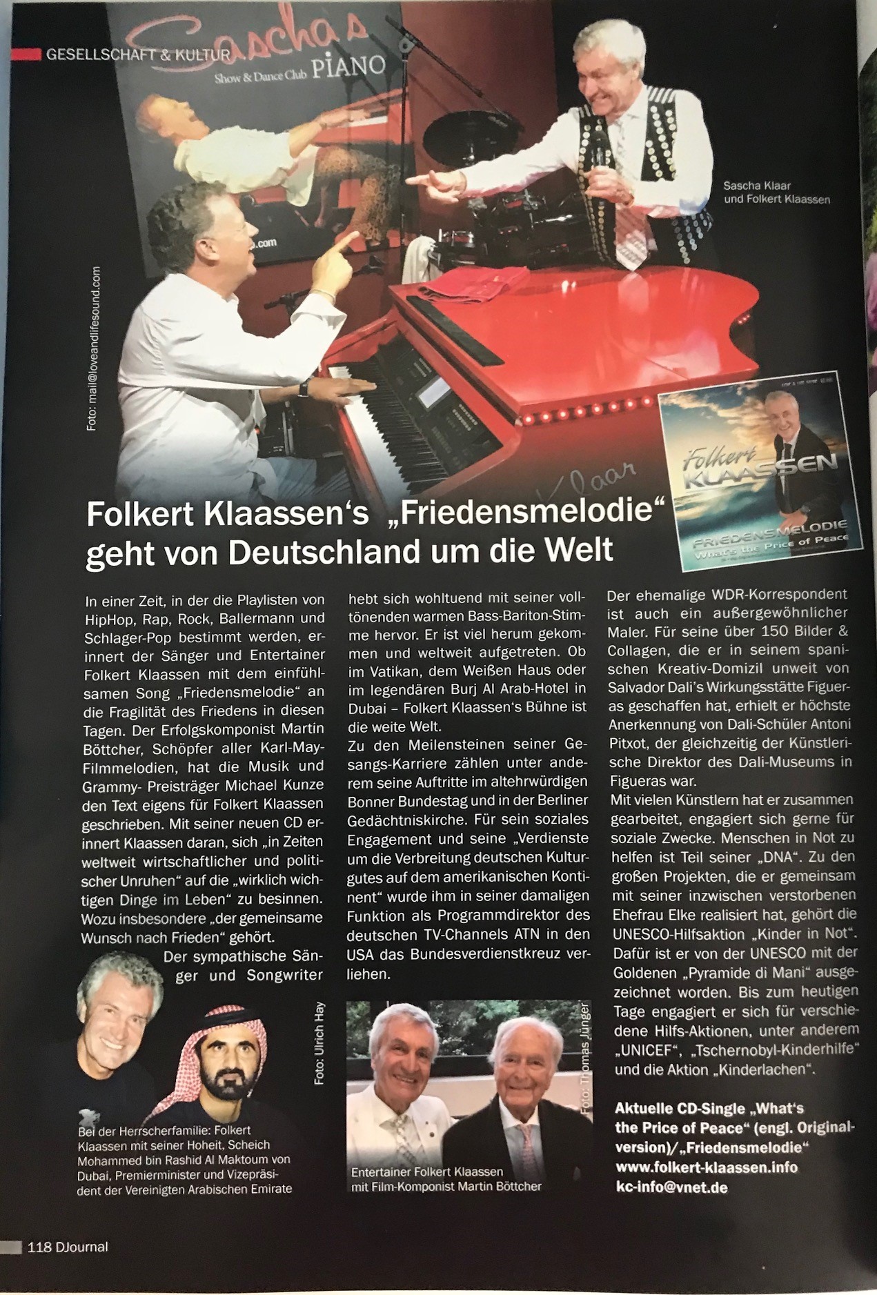 Friedensmelodie geschrieben hat. Auf der neuen Single ist erstmalig